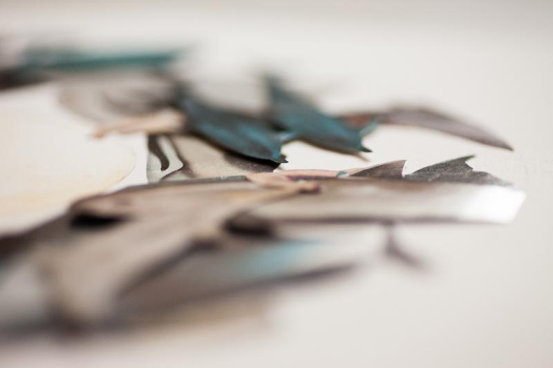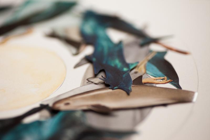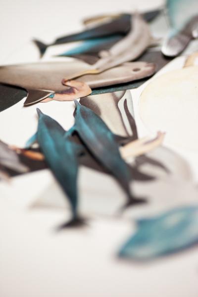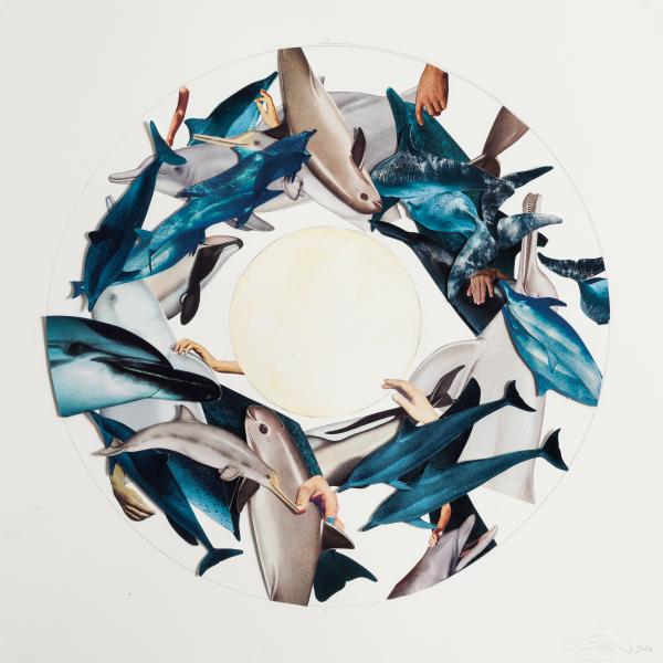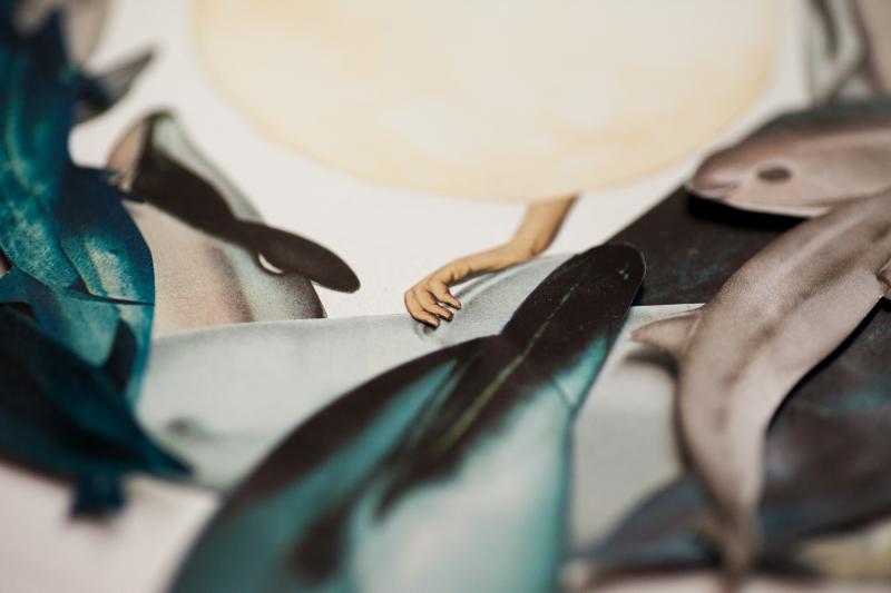 This month’s images are from Dolphins, a mixed-media collage by Catherine Mellinger, macro-photographed by Melanie Gordon.