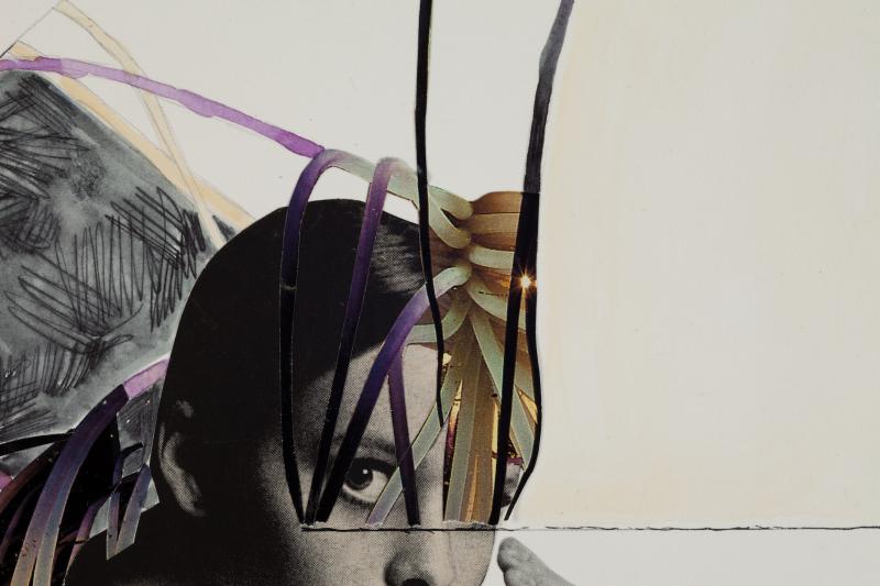 This month’s images are from “Whips” a mixed-media collage by Catherine Mellinger, macro-photographed by Melanie Gordon.