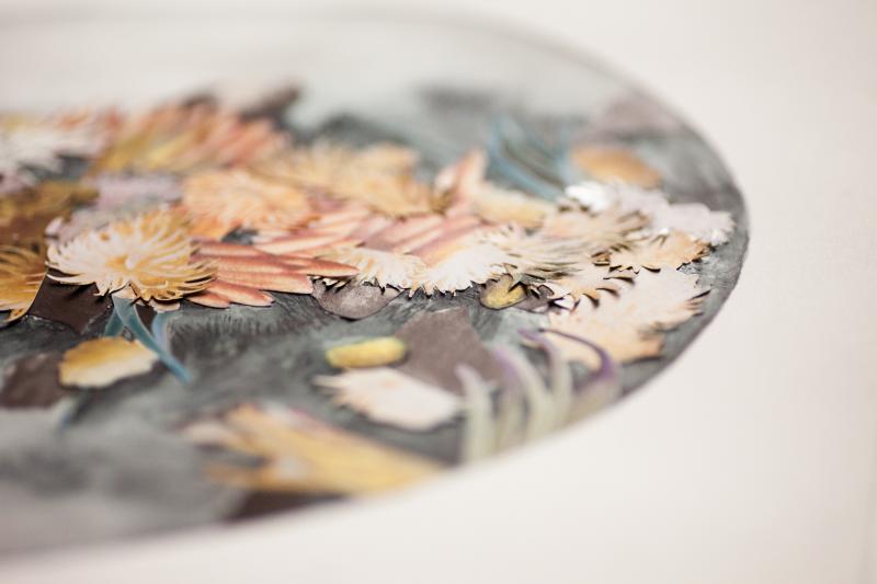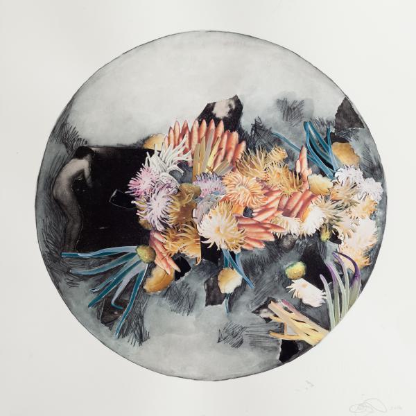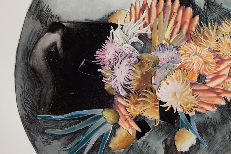 This month’s images are from Anemone, a mixed-media collage by Catherine Mellinger, macro-photographed by Melanie Gordon.