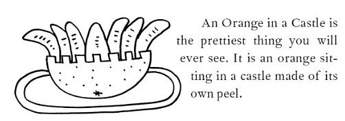 “An Orange in a Castle is the prettiest thing you will ever see. It is an orange sitting in a castle made of its own peel.”