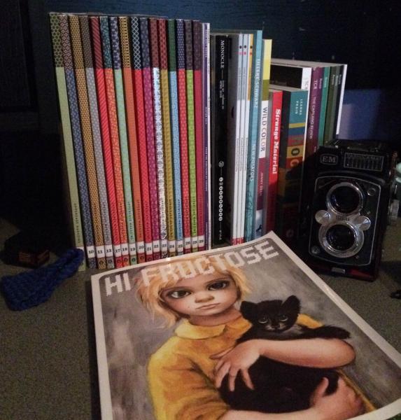 I like to try my hand at organizing my books, but my best attempts are inevitably altered by the arrival of new books and magazines. For the most part, my bookcase is organized alphabetically (ish) with two layers of books on each shelf and my magazines are arranged by size on my desk.