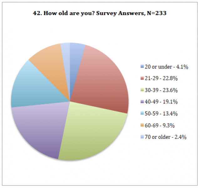 Room readers are mostly women (94.2% of survey respondents), and—with the exception of the very young (under 20) and very old (over 70)—are represented in roughly equal distribution across all ages.