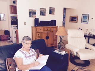 Before her present laptop, Carmen used another computer , and before that computer, she used a word processor. “There is an efficiency to the computer,” she explains. “It makes my job easier (re-writing, cutting and pasting, etc.).” Though she started writing with a pen and paper, she has upgraded as technology allowed and so she is happy with her writing tools.