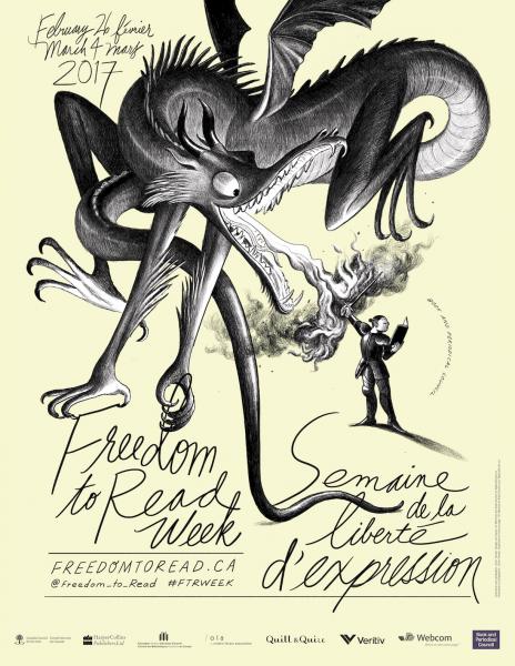 Photo credits: Jillian Tamaki, photo by Reynard Li (top), This One Summer by Jillian Tamaki and Mariko Tamaki (middle left), SuperMutant Magic Academy by Jillian Tamaki (middle right), Freedom To Read poster by Jillian Tamaki (bottom left).