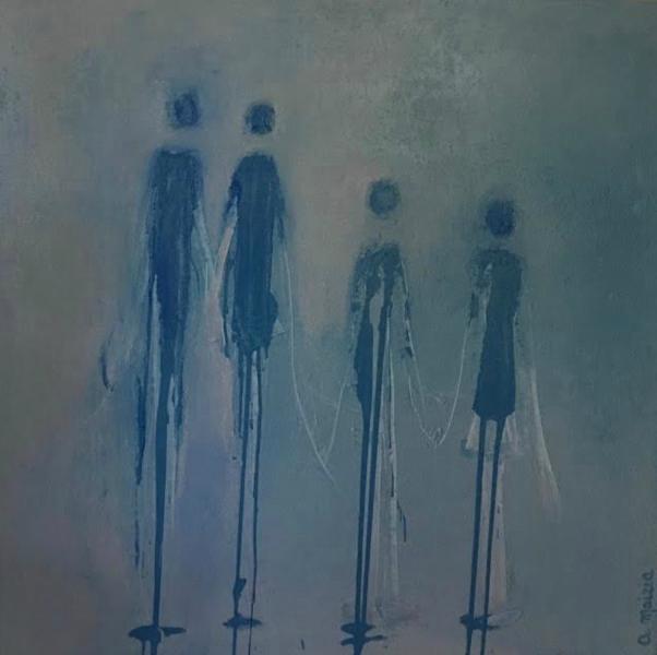 AM: I always loved the sculptures of Giacometti. He is one of my sources. I just got into that series and thought, oh, I love it. And so I started drawing figures, families, and things like that. It is also referring to how I felt at the time I painted, there is also some kind of nostalgia to it.